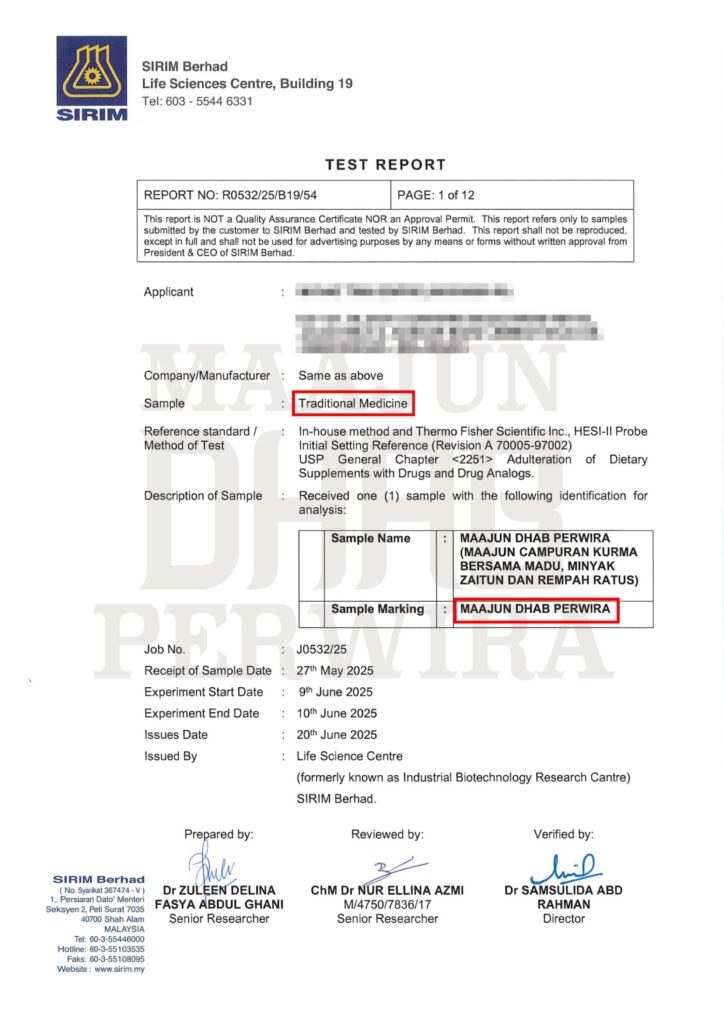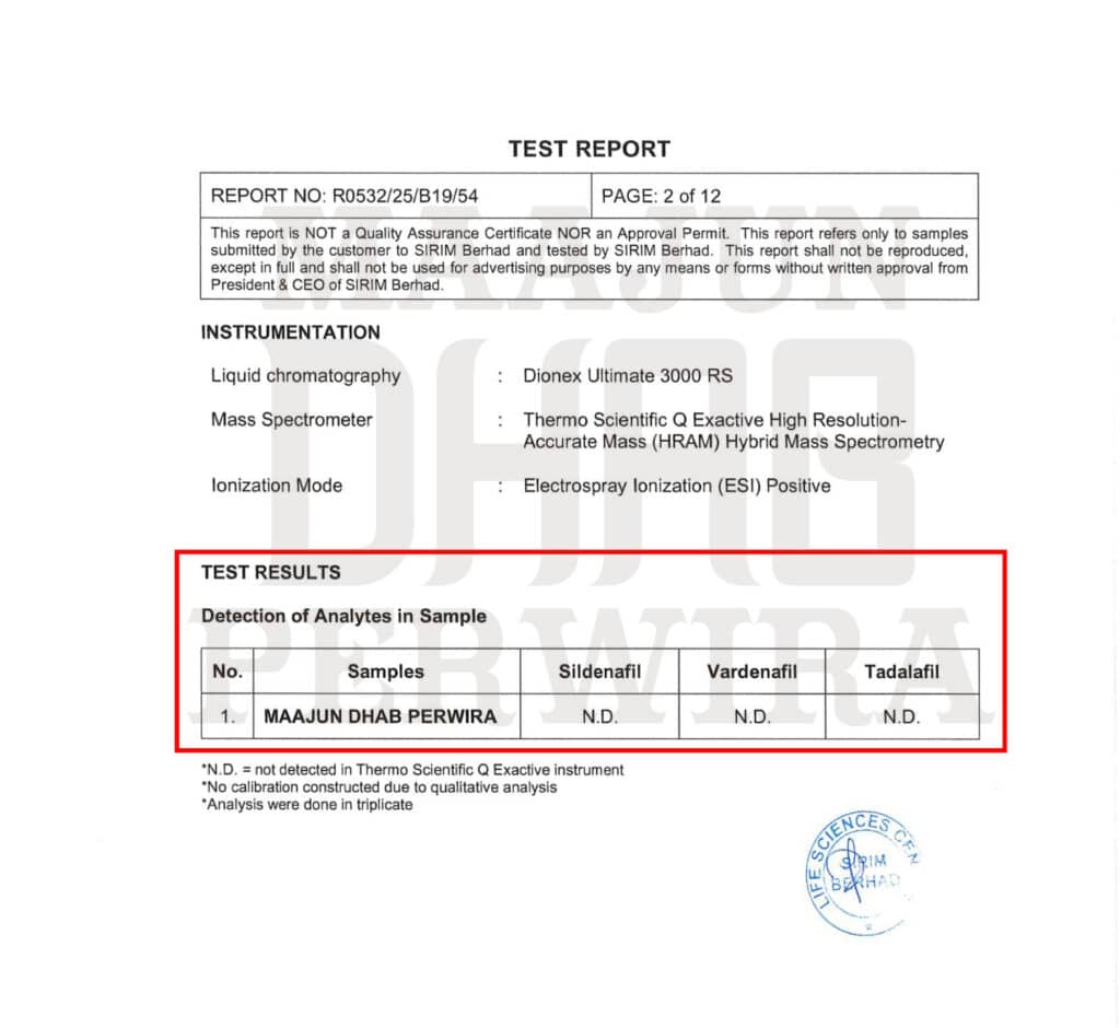 Hasil Ujian SIRIM MAAJUN DHAB PERWIRA Bebas Bahan Kimia